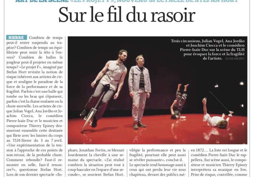 Canal9 : «Le Projet F», nouvelle création de cirque contemporain de la cie.sh
