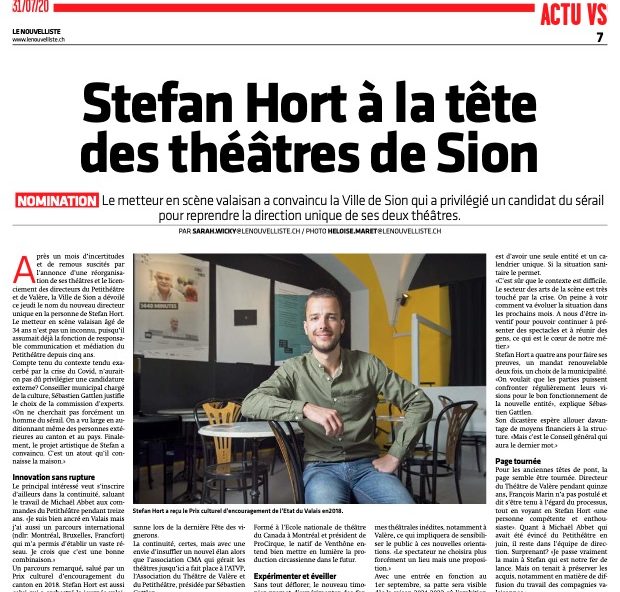 - Stefan Hort, nommé directeur des théâtres de Valère et Petithéâtre à Sion 31.07.2020